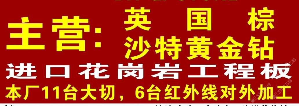 本公司主營(yíng):英國(guó)棕、黃金鉆,藍(lán)眼睛,安格拉黑、黃蝴蝶、淺紫點(diǎn)、進(jìn)口花崗巖等,地址:南安市水頭鎮(zhèn)高速出口洋美茂高鐵橋下!歡迎前來咨詢
