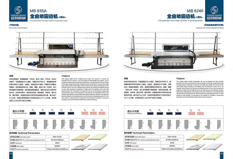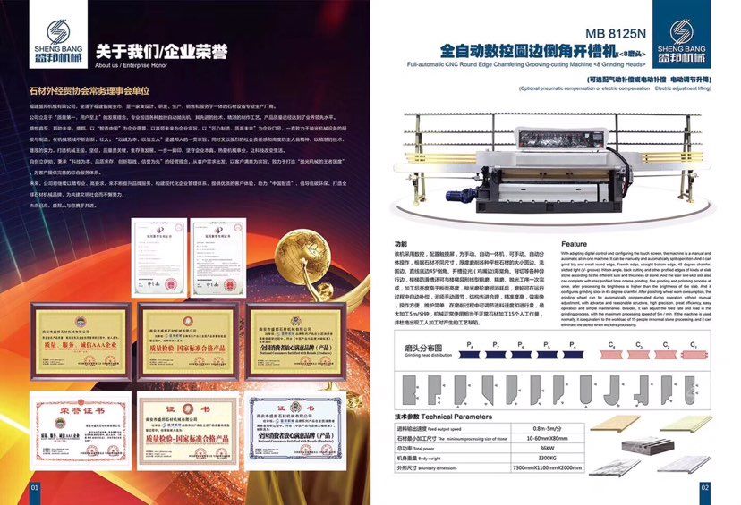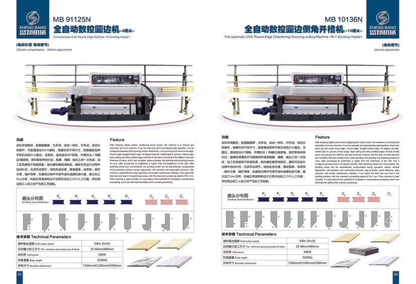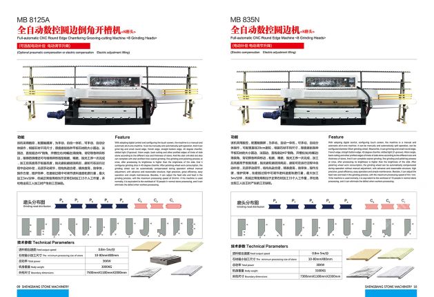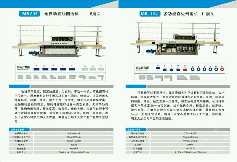 公司主營(yíng):‘’全自動(dòng)數(shù)控圓邊機(jī)、全自動(dòng)數(shù)控地腳線機(jī),多功能直邊倒角機(jī)’‘全自動(dòng)直邊倒角機(jī)‘’全自動(dòng)臥式磨邊機(jī)’也可根據(jù)客戶需求定制各種全自動(dòng)石材加工機(jī)械!磨邊機(jī)、拋光機(jī)合二為一,粗磨、精磨、拋光一次完成,拋光后效果高于板面光潔度!拋光磨輪磨損消耗后,磨輪可在運(yùn)行過(guò)程中自動(dòng)補(bǔ)償,無(wú)須手動(dòng)調(diào)節(jié),不會(huì)產(chǎn)生手工操作中出現(xiàn)的工藝缺陷!結(jié)構(gòu)先進(jìn)合理!精準(zhǔn)度高,效率快,操作方便!維護(hù)簡(jiǎn)單快捷! 盛邦機(jī)械團(tuán)隊(duì)期待與您攜手并進(jìn),為您降低加工成本,創(chuàng)造財(cái)富!使用我司全自動(dòng)磨邊拋光機(jī)械成本每米:人造石每天按工作8小時(shí)計(jì)算,一分鐘可磨4米,8小時(shí)可磨1920米,每米成本0.4元,大理石8小時(shí)可磨1300米,每米成本0.6元,花崗巖8小時(shí)可磨9百多米,一分鐘可磨2米,每米成本0.8元,(成本含水電費(fèi),人工,磨輪損耗等) 操作簡(jiǎn)便,雜工即可,精準(zhǔn)度高,無(wú)工藝缺陷,售后維護(hù)方便,簡(jiǎn)單。歡迎到水頭鎮(zhèn)弘泰機(jī)械C區(qū)2號(hào)來(lái)考察試機(jī)。聯(lián)系人:方經(jīng)理18016666181