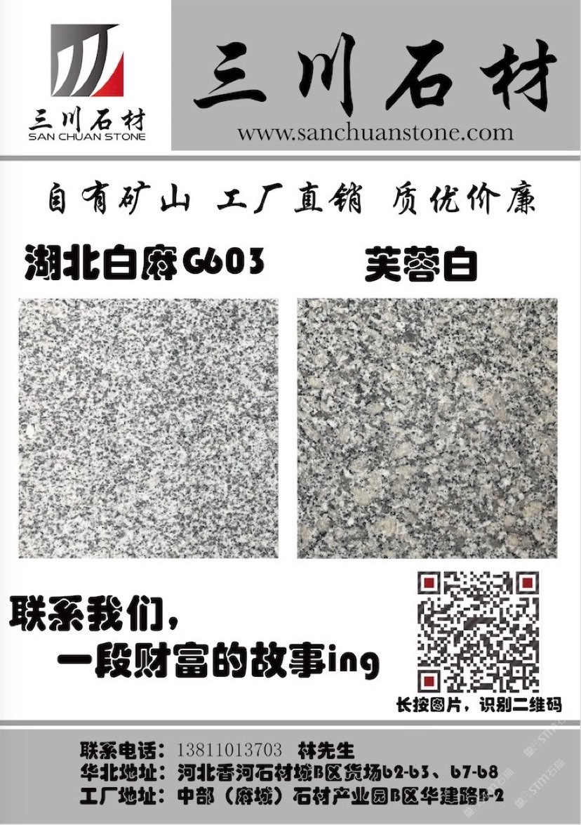 三川石材有限公司是一家專注于國內(nèi)石礦開采、加工及貿(mào)易的專業(yè)化公司,是湖北省麻城市知名石材企業(yè)之一。公司的創(chuàng)始人團隊從業(yè)始于1996年初,1998年在福建省羅源縣投資建廠,經(jīng)過近三十多年的發(fā)展,2013年將公司總部設在中部(麻城)石材循環(huán)經(jīng)濟產(chǎn)業(yè)園,下設河北、湖北、重慶、江西、浙江等幾大生產(chǎn)加工基地及銷售網(wǎng)點。