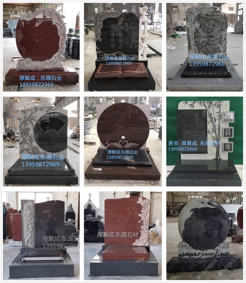 厚聚成石材惠安東晟工廠位于福建惠安蓮西工業(yè)區(qū),專(zhuān)業(yè)生產(chǎn)各種類(lèi)型的墓碑。主要產(chǎn)品有中國(guó)墓碑,俄碑系列,美碑系列,歐碑系列。中國(guó)墓碑,分為傳統(tǒng)墓碑,藝術(shù)墓碑,豪華墓碑及墓飾系類(lèi),可以接受定制,歡迎來(lái)工廠實(shí)地考察,聯(lián)系電話:13959872969,何先生。
