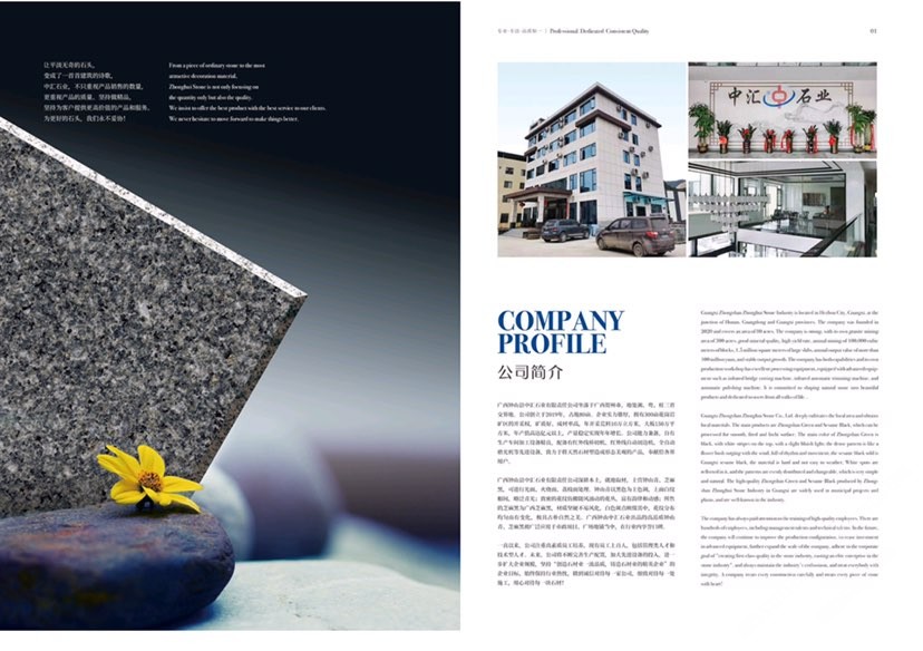鐘山縣中匯石業(yè)有限責(zé)任公司坐落于廣西壯族自治區(qū)賀州市,地處湘、粵、桂三省交界地。公司創(chuàng)立于2019年,占地面積80余畝。企業(yè)實(shí)力雄厚,擁有300畝花崗巖礦區(qū)的開采權(quán),礦質(zhì)好、成材率高,年開采荒料10萬立方米,大板150萬平方米,年產(chǎn)值高達(dá)億元,產(chǎn)量穩(wěn)定實(shí)現(xiàn)連年增長。公司才能兼?zhèn)?,自有生產(chǎn)車間,加工設(shè)備精良。配備有紅外線橋切機(jī)、紅外線自動(dòng)切邊機(jī)、全自動(dòng)磨光機(jī)、定厚機(jī)、仿形機(jī)、雕刻機(jī)等先進(jìn)設(shè)備,致力于將天然石材塑造成形態(tài)美觀的產(chǎn)品,奉獻(xiàn)給社會(huì)各界用戶。