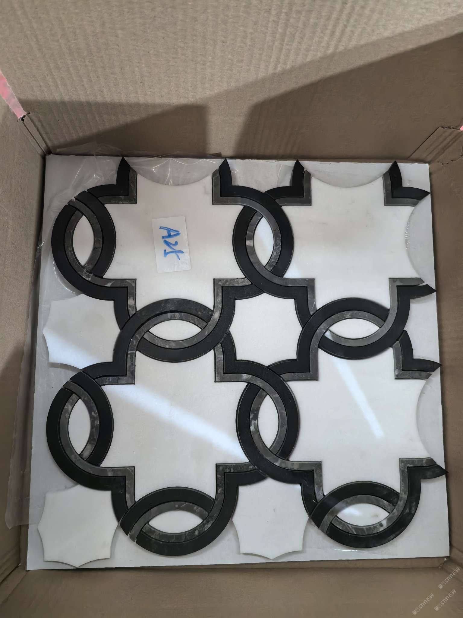 雪花白、寒江雪、金蜘蛛;水刀馬賽克、線條
