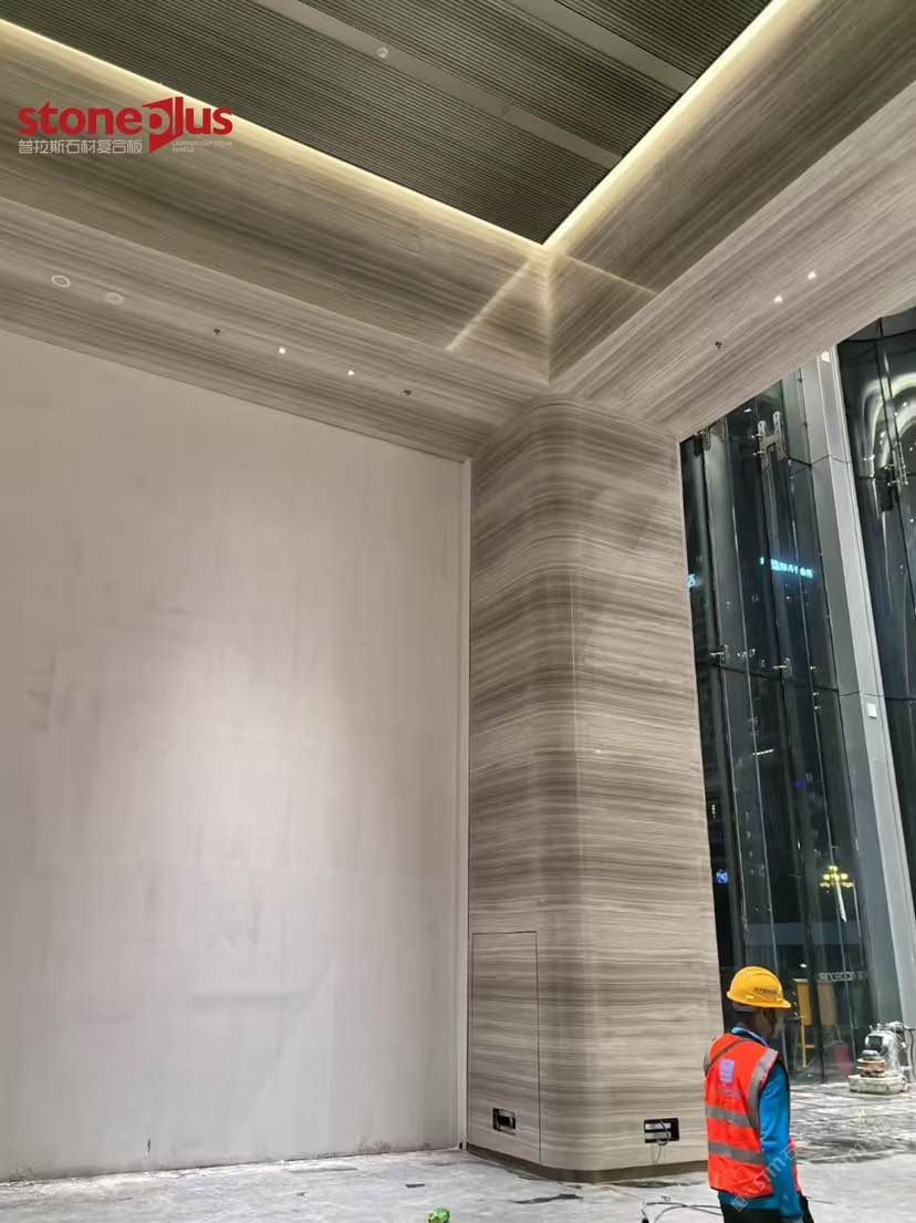 發(fā)布信息: 澳門中心位于廣州市黃埔區(qū)魚珠片區(qū),項(xiàng)目定位為商業(yè)商務(wù)綜合體打造以港澳特色為主的、有國(guó)際影響力的科技金融和數(shù)字經(jīng)濟(jì)總部基地,并大力引入澳門文化和商業(yè)業(yè)態(tài),打造充滿澳門風(fēng)情的文創(chuàng)藝術(shù)街區(qū),實(shí)現(xiàn)科技金融產(chǎn)業(yè)一體化、粵澳葡三地合作一體化。 其中大樓室內(nèi)墻面采用白木紋復(fù)合鋁蜂窩,預(yù)埋螺栓打孔后再進(jìn)行復(fù)合,到現(xiàn)場(chǎng)進(jìn)行干掛安裝;包柱采用白木紋復(fù)合鋁蜂窩平板拼弧工藝,對(duì)手加工工藝要求較高,我們普拉斯加工對(duì)品質(zhì)的追求與現(xiàn)場(chǎng)的安裝效果相得益彰。