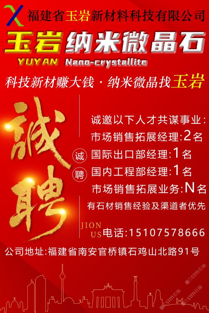 發(fā)布信息: 福建省玉巖新材料科技有限公司 科技新材賺大錢?納米微晶找“玉巖” 產(chǎn)品名稱:巖熔玉石 學(xué)術(shù)名稱:納米微晶石 產(chǎn)品特性: 一零:零輻射 二防:防滑;防污 三耐:耐磨;耐酸堿;耐高溫 四可:可透光;可回收;可熱彎;可加熱。 企業(yè)使命:推動(dòng)環(huán)保建材,共建美好未來(lái)。 企業(yè)愿景:融納米微晶石,塑匠心玉巖魂。 企業(yè)價(jià)值觀:感恩奉獻(xiàn),成人達(dá)己,科技創(chuàng)新,精益求精。 生產(chǎn)廠家: 福建省中郡莊藝新材料科技有限公司榮譽(yù)出品。