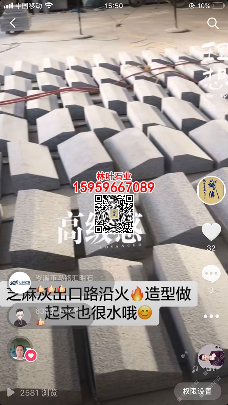 發(fā)布信息: 林葉石業(yè)長泰工廠(林總15959667089微信同號)專業(yè)老礦芝麻黑與芝麻灰供應商,專注于出口及高品質工程國內外園林景觀石材;主營:老礦芝麻黑墓碑石、正礦吳田山G654窗臺板、G654芝麻黑牛鼻子、芝麻黑石材游泳池蓋板、老礦芝麻黑出口高品質工程板、老礦654小方塊馬蹄石、芝麻灰G655路沿石、深灰麻石材、中灰麻石材、深灰色花崗巖、黑色麻石等光面、燒面、荔枝面、墓碑石材、地鋪石材、園林景觀工程、路沿石材等;林葉石業(yè)寧德工廠(葉總18050650127微信同號)專業(yè)新礦芝麻黑寧德小藍寶,廠礦一體,體格優(yōu)惠,真誠希望您的光臨與合作?。暶魃蟼鳟a品圖片均是本廠加工生產)