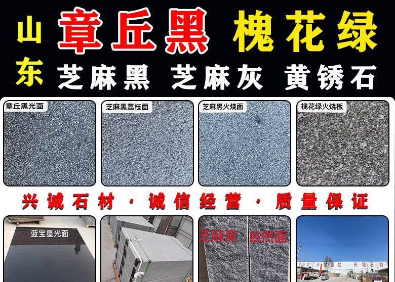 發(fā)布信息: ?? 山東章丘黑(山東654福建654的替代品一模一樣) ?? 槐花綠 黃銹石 芝麻灰 ?? 芝麻黑原材料充足,可承接大量工程單? ? ? 主營(yíng):荔枝面,光面,火燒面,蘑菇石等各種異形加工石材,期待新老客戶前來咨詢合作[握手] 聯(lián)系人:18306588911王 地址:山東省臨沂市平邑縣興誠(chéng)石材