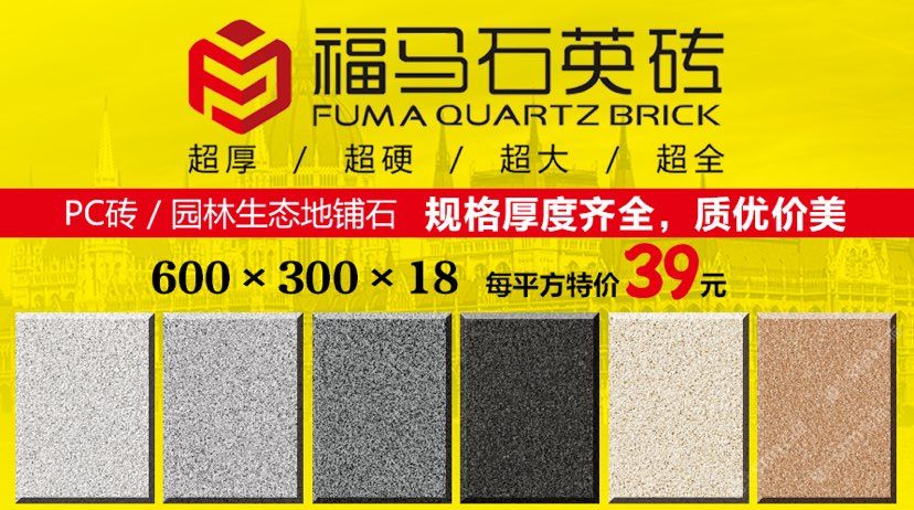 發(fā)布信息: ??福馬石英磚 專(zhuān)業(yè)提供園林市政地鋪石,外墻干掛板,規(guī)格厚度齊全,質(zhì)量?jī)?yōu)良,價(jià)格實(shí)惠。