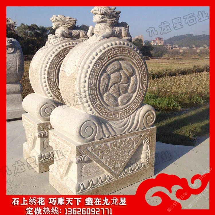 發(fā)布信息: 石雕圓形抱鼓石 門墩抱鼓石圖片及價(jià)格——九龍星石業(yè)。 石雕圓形抱鼓石的方圓有著不同的寓意,在古代,方形的門墩多為文官使用,圓形的門墩多為武官使用。門墩借助人物、草木、動(dòng)物、工具、寓言、幾何圖案,石頭抱鼓石上面的瑞獸表達(dá)了四合院的建筑者們希望長壽、富貴、驅(qū)魔、夫妻美滿、家族興旺的美好心愿。獅和世諧音,雕九只獅子的圖案是九世同居,表示合家團(tuán)聚、同堂和睦的祝愿。 石雕圓形抱鼓石上面的瑞獸有獅子、麒麟、大象等靈獸。古代,不同地位官階等級(jí)的門戶擺放的抱鼓門石是不同的,文官用書箱形、武官用獸吻形,而古代住所高管門前門墩石的石獅子等靈獸一般都比較大,象征著地位和財(cái)富。