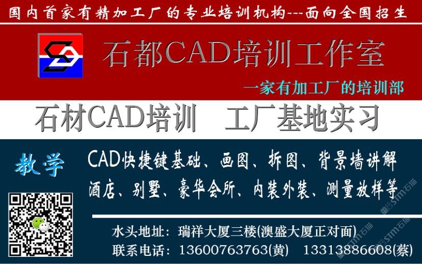 發(fā)布信息: 俗話說:“山無石不險(xiǎn),水無石不清,園無石不秀,居無石不雅,在水頭這個(gè)以石為主的地方---石都, 石都CAD培訓(xùn)工作室 一家有精加工廠的培訓(xùn)工作室 招生中... 地址:奧盛大廈對(duì)面瑞祥大廈三樓,聯(lián)系電話:13600763763、136-2599-0077 我們有理想、有激情、團(tuán)隊(duì)專業(yè)、前景廣闊---只等你來大顯身手。