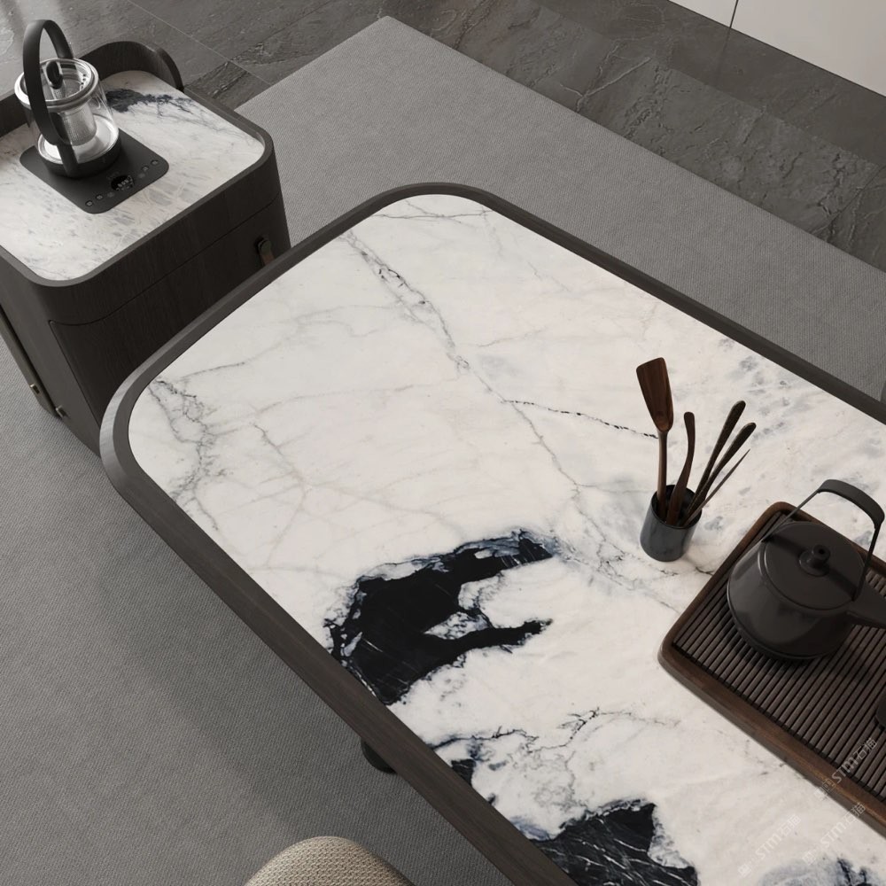 此時,庫諾米大理石的冰涼觸感, 與茶水的溫?zé)嵝纬甚r明對比, 讓人在飲茶之時,也能感受別樣的樂趣。