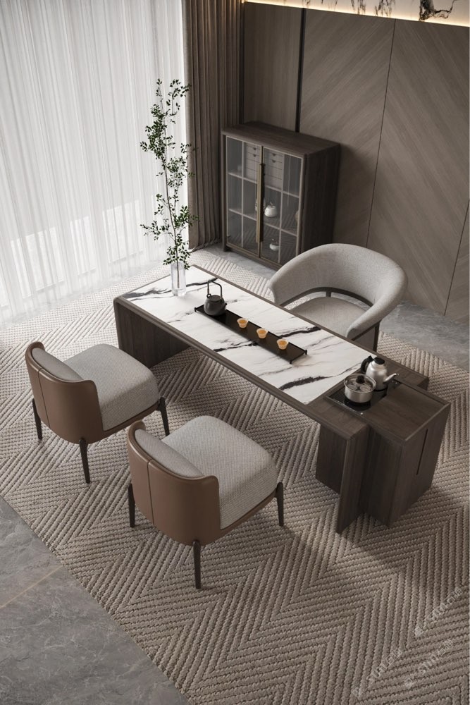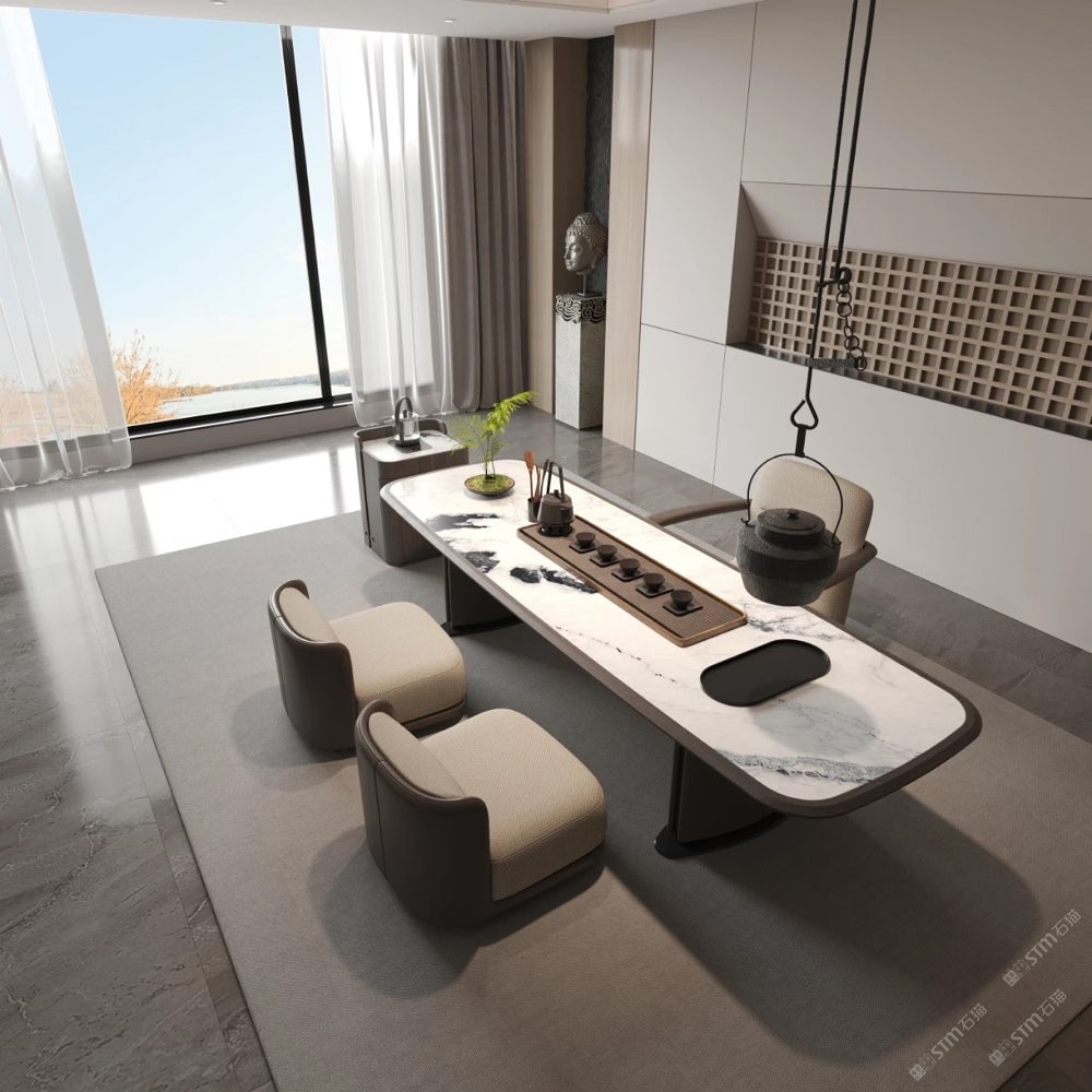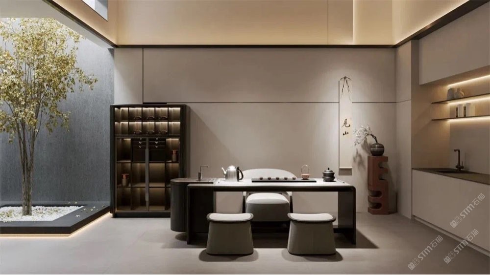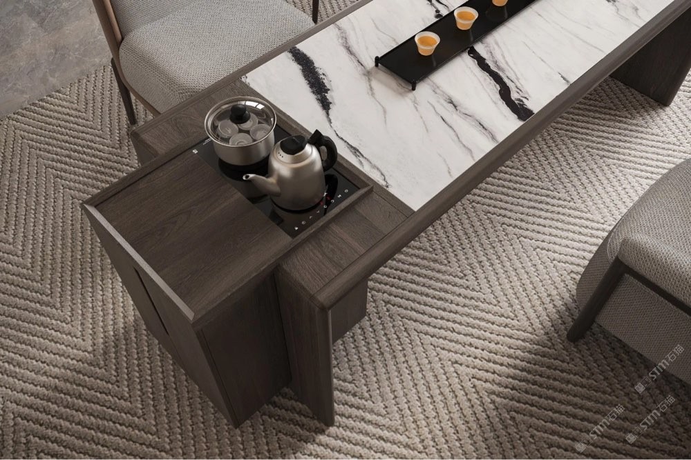 ART 藝術(shù)主為大美賓可點(diǎn)睛 庫諾米作為高檔的天然石材, 具備優(yōu)越的耐磨、耐高溫性能, 適應(yīng)泡茶過程中的各種環(huán)境需求。