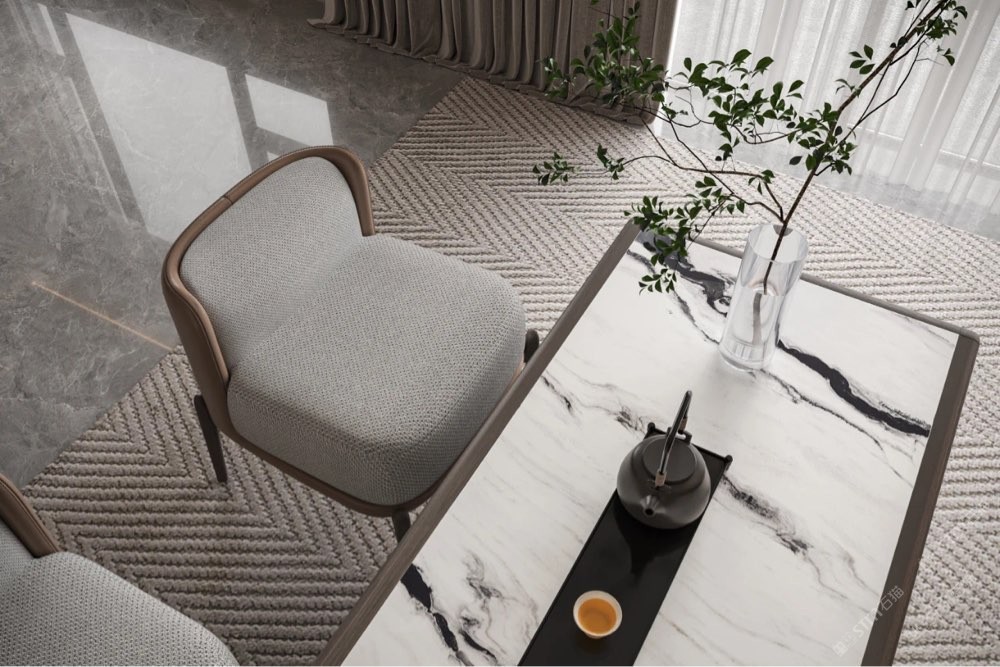 當(dāng)茶桌整個臺面都以庫諾米為主時, 廣闊的留白,黑色的線條自由地舞動, 如同賦予思維以無垠的天空, 任由想象力自由馳騁,且不失雅致與細(xì)膩。 空間呈現(xiàn)剔透貴氣質(zhì)感,打破束縛, 沒有邊界,享受追尋自由的家居藝術(shù)。