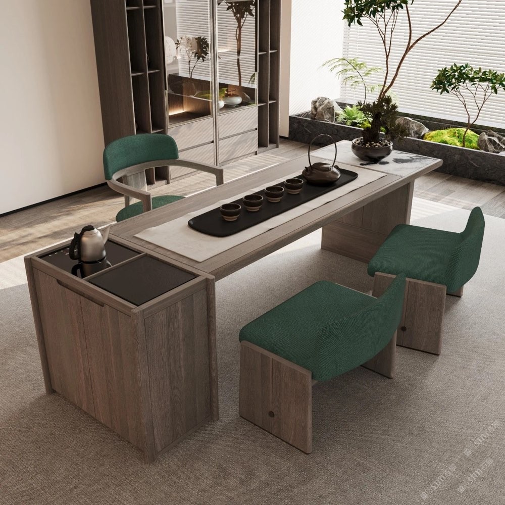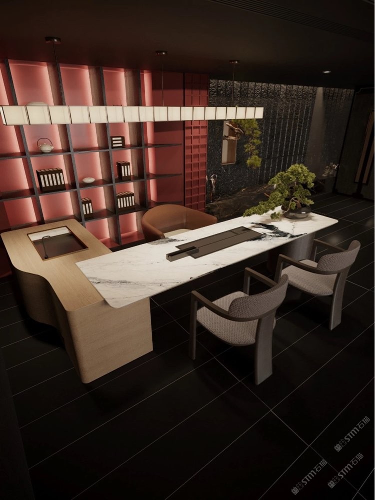 除此之外,用庫諾米作為點(diǎn)綴, 往往也能起到畫龍點(diǎn)睛的作用。 比如鑲嵌在茶桌一側(cè), 奢石與實(shí)木相互輝映,打造低調(diào)的奢華。 搭配茶水潺潺之聲,如若置身于山水之間, 盡享大自然的恩賜。