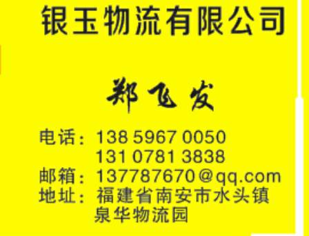 發(fā)布信息: 福建南安水頭 (東方萬(wàn)里物流) 承接,福建---全國(guó)各地(整車(chē) 零擔(dān))和大件貨物運(yùn)輸。 本公司自有大型停車(chē)場(chǎng),只有車(chē)隊(duì),飯店,旅社, 車(chē)型:4.2米,6.8米,9.6米,13米,17.5米, 價(jià)格合理,隨叫隨到,天天發(fā)車(chē), 歡迎來(lái)電咨詢(xún)!13859670050