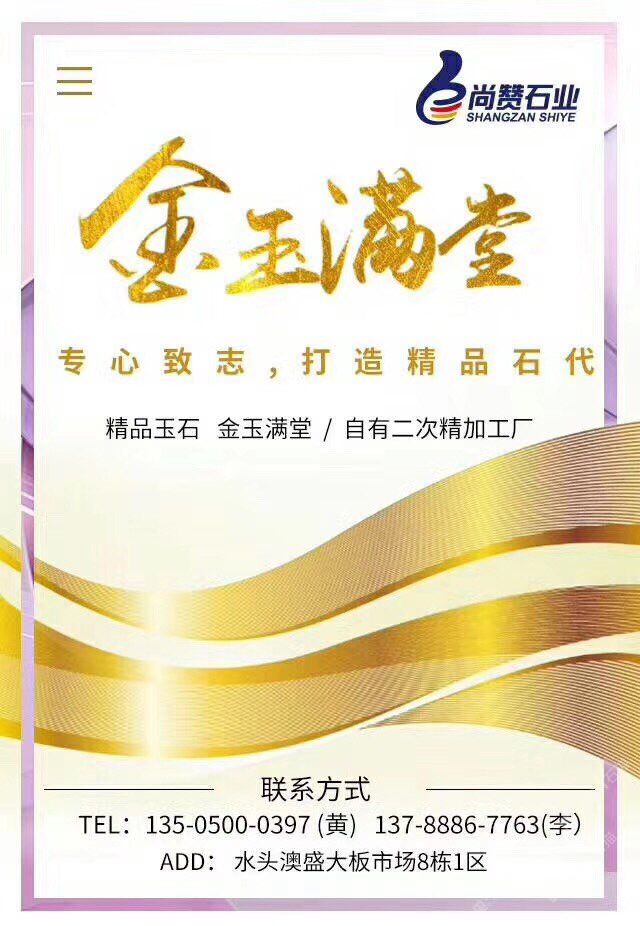 發(fā)布信息: 尚贊石業(yè)。礦山直銷~金玉滿堂 地址:奧盛8棟1區(qū) 聯(lián)系人電話13505961703黃慧玲