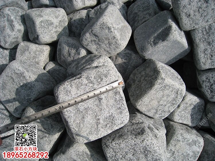 老礦G654芝麻黑滾石深灰麻小方塊馬蹄石彈石方塊石