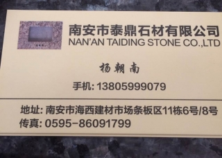 泰鼎石業(yè)主營(yíng)產(chǎn)品:新莎莉士紅,石井銹(火燒面),黃金麻1,浪淘沙,啡鉆,浪淘沙(新礦),石井銹(光面),黃金麻4企業(yè)地址:福建南安水頭鎮(zhèn)海西石材城11棟6-8號(hào)
