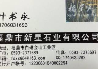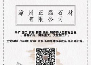 興安礦業(yè)主營(yíng)產(chǎn)品:黃金麻3,黃金麻,沙漠棕1,沙漠棕(寶金石),山東銹石,木蘭紅,山水白,芝麻黑654,銹石,黃銹石,石井銹石(荔枝面),青石,青石(荔枝面),山水木紋綠(荔枝面),山水木紋綠(水沖面),山水巖(山東),萬(wàn)源青,泉州紅,G655,龍柱企業(yè)地址:福建泉州水頭鎮(zhèn)福山工業(yè)區(qū)三期新環(huán)球往白蓮寺方向一公里。