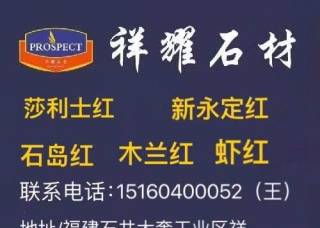 福建興昌石業(yè)有限公司主營產(chǎn)品:新皇室啡1,皇室啡珠大花,山東蝦紅,皇室棕鉆,皇室瑪瑙,皇室啡珠2,皇室玫瑰2,皇室玫瑰1,皇室灰,山東白麻,中磊紅,皇室啡珠,皇室啡珠1企業(yè)地址:福建泉州水頭鎮(zhèn)福山工業(yè)區(qū)弘一物流園